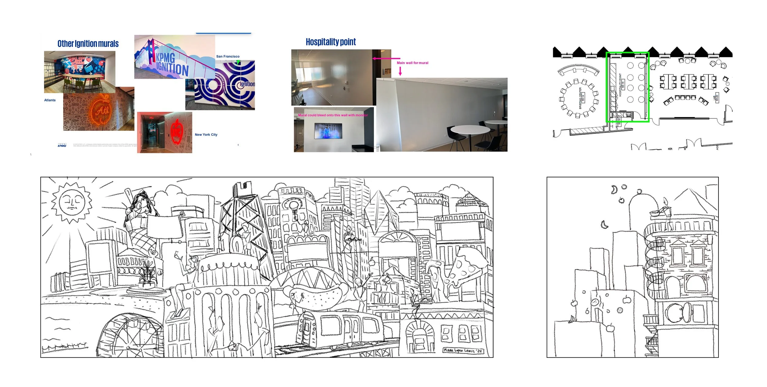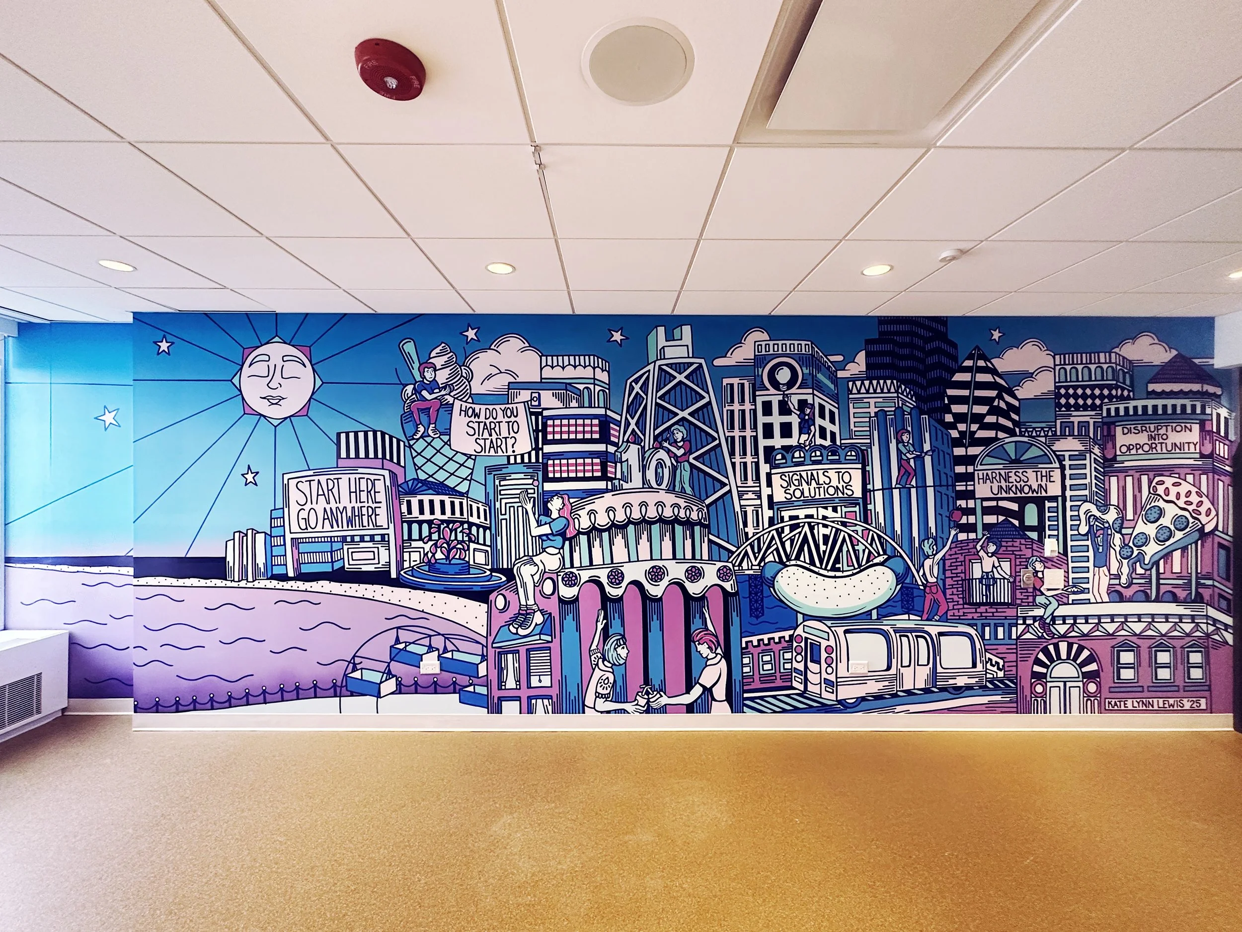 Mural painted on 2 separate walls in the lounge area of the KPMG Office in Downtown Chicago, IL